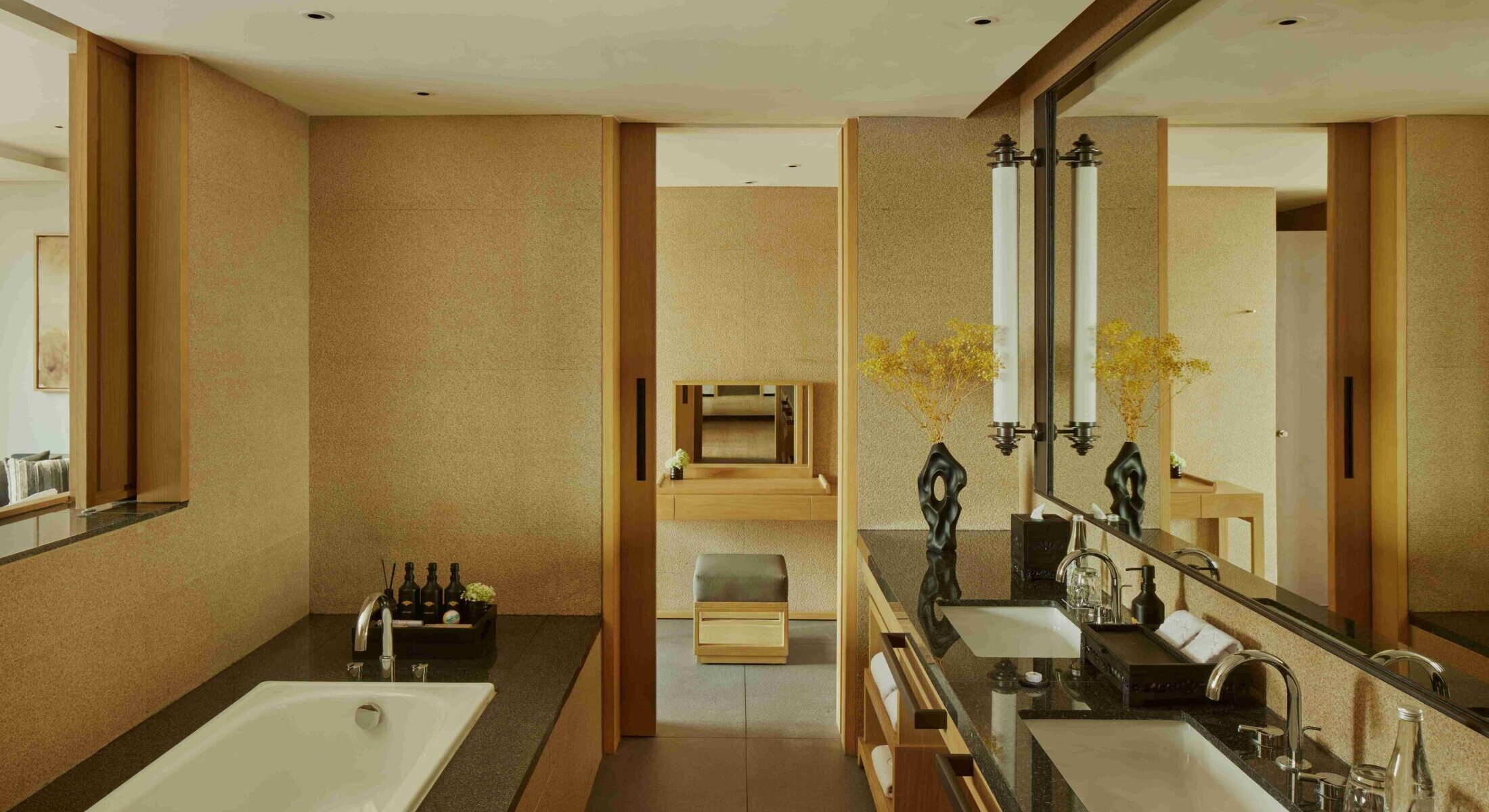 A harmonious blend of panoramic city views and the cozy sanctuary of your own space makes the Kusuma Suite, at 74 sqm, the ideal setting for a leisurely getaway. Designed with your personal comfort in mind, the suite features a dedicated working area, a walk-in closet, and a generously sized bathroom. Available exclusively in a king configuration, every detail of this room has been carefully curated to ensure a heightened sense of relaxation.