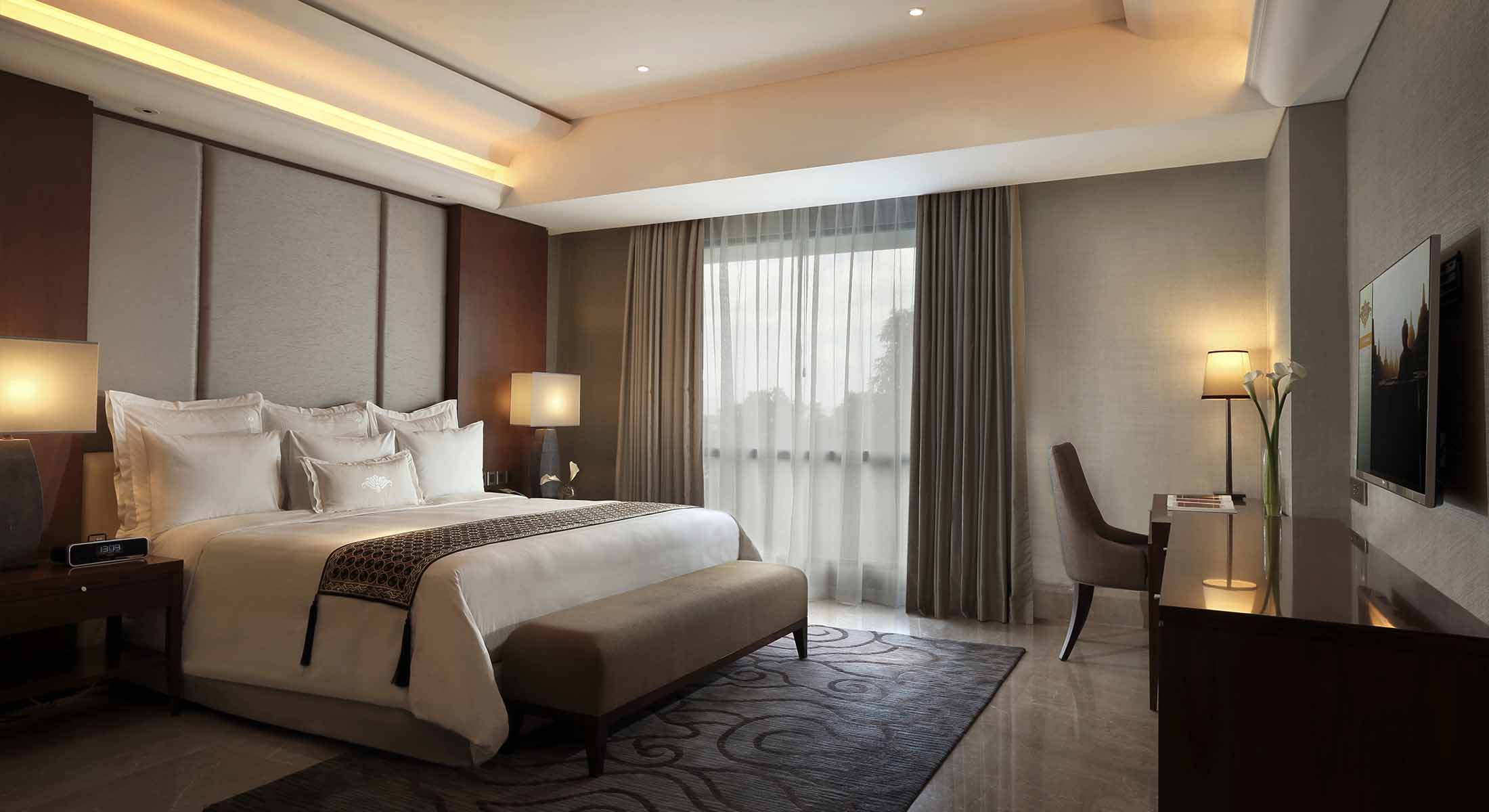 Our Prambanan Suite is a luxurious haven of contemporary elegance in its 129-square meter of space. Enjoy a two-room suite perfectly equipped for comfort and convenience with an inviting living area, spacious bathroom and separate shower. Guests staying at our Prambanan Suite are entitled to enjoy the comfort and facilities at our Executive Lounge which include continental breakfast daily, daily refreshments, VIP express check-in and access to Gaharu Spa and Fitness, and use of the Business Center facility.