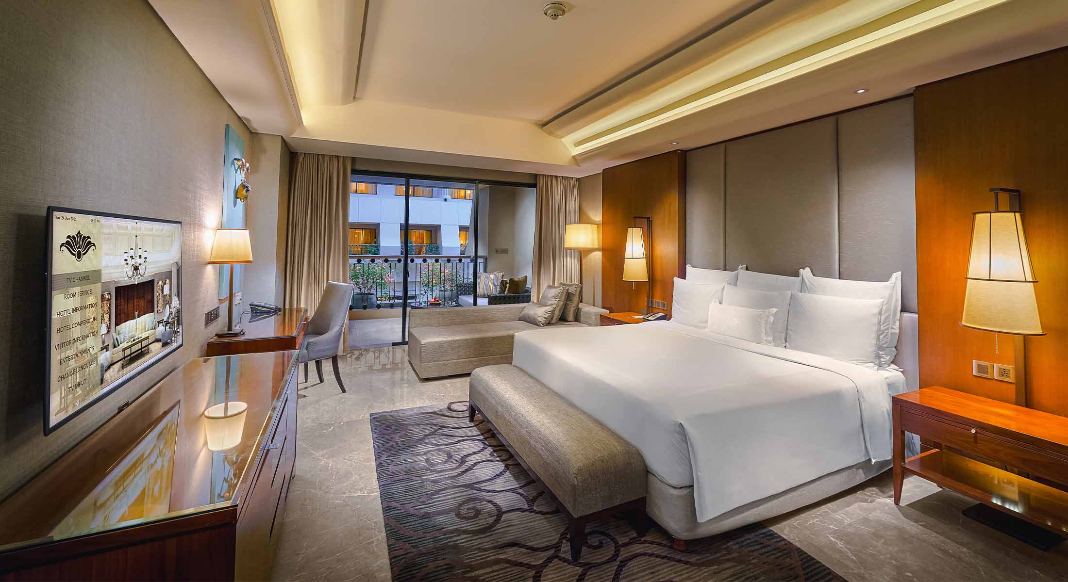Experience the exclusivity and comfort of our 50 square meter space Premier Room, featuring a balcony overlooking the swimming pool. Equipped with large LED screens and high speed broadband internet access, guests staying in Premier Room will have complimentary access to Gaharu Spa and Fitness. This room type is only available for smoking room.