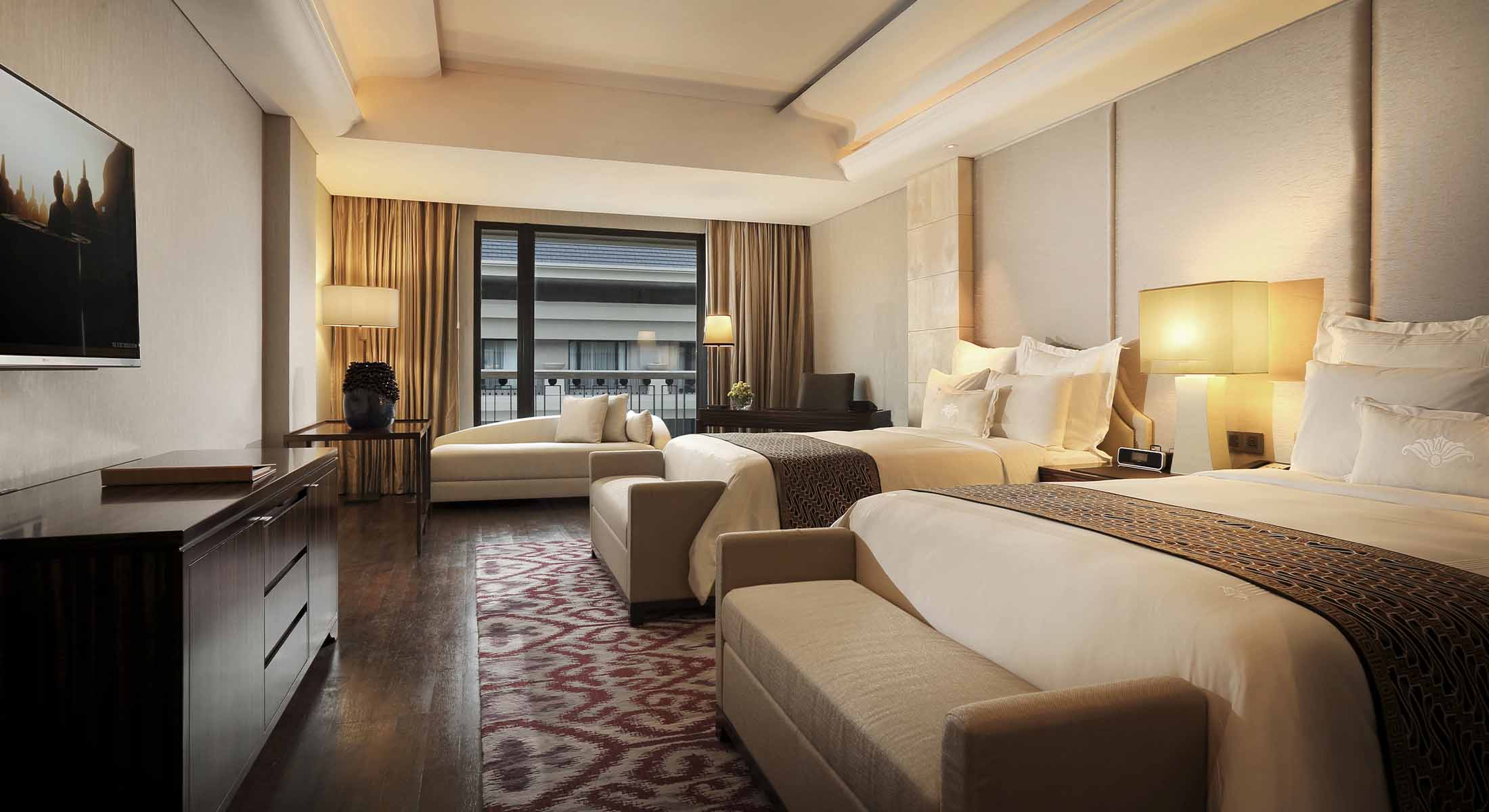 Our Prambanan Suite is a luxurious haven of contemporary elegance in its 129-square meter of space. Enjoy a two-room suite perfectly equipped for comfort and convenience with an inviting living…